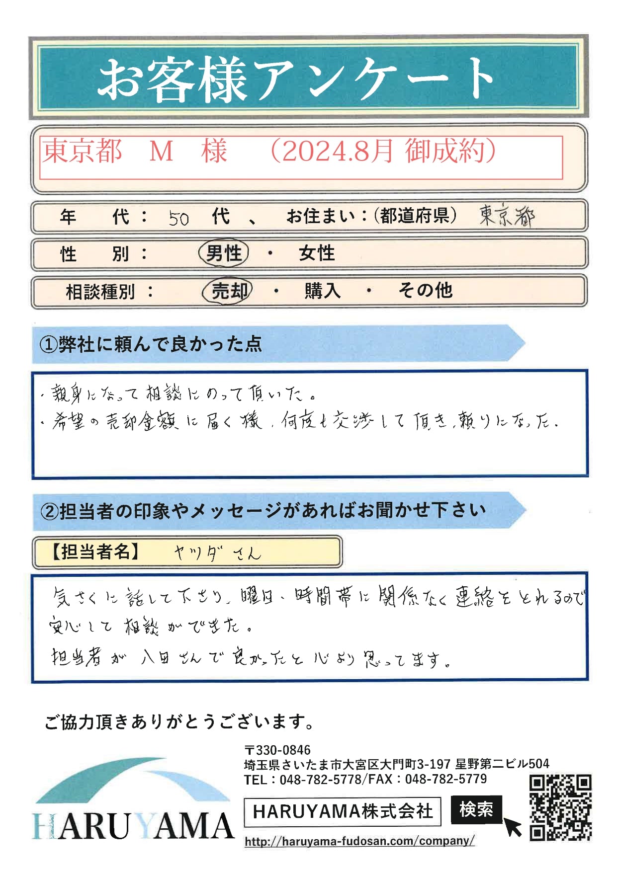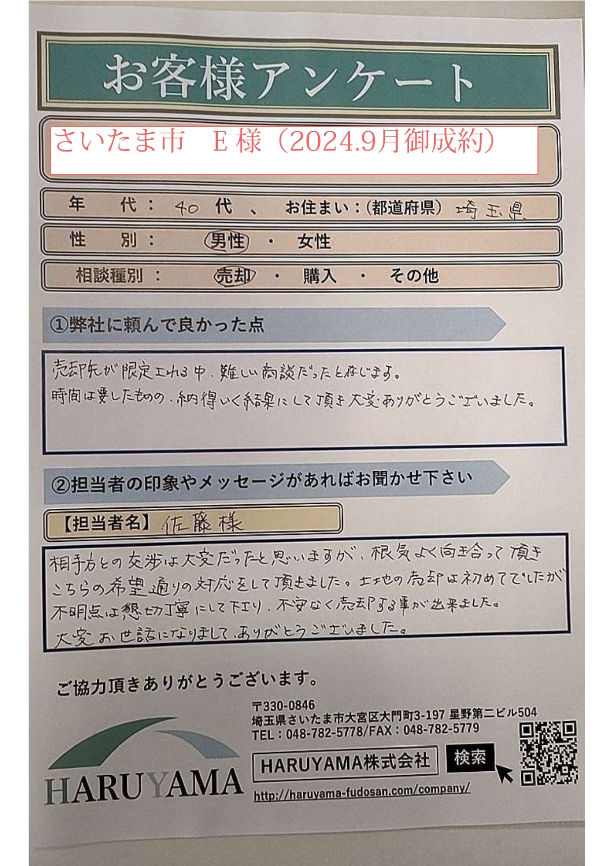 ※もし、ご提示いただいた金額にご納得いただけない場合、再度買主様とご交渉させていただきます。